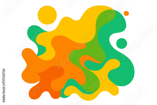Flowing forms concept of summer, bright and juicy colors. Retro geometric abstract art design with liquid shapes and overlay effect. Textured vector background for template.