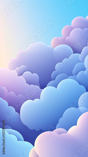 Fluffy cloudscape filling the sky with pastel colors at sunset