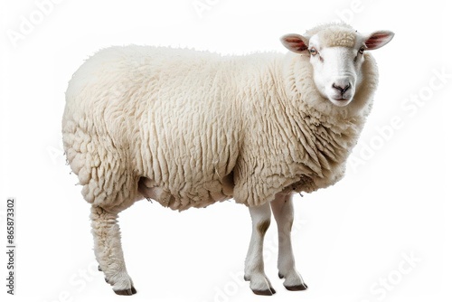 fluffy white sheep isolated on plain background farm animal photography