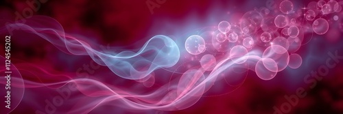 Fluid abstract background with pink and blue waves and bubbles for artistic and creative designs