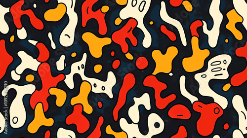 Fluid Movement Seamless Pattern in Black and Orange