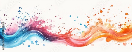 Fluid wave shapes, vibrant paint splashes, bright tones, abstract movement, Watercolor style