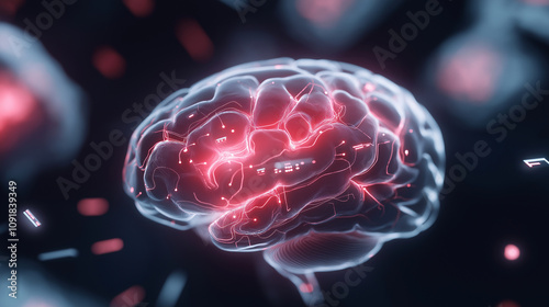 Flying Artificial Intelligence brain on digital IT background