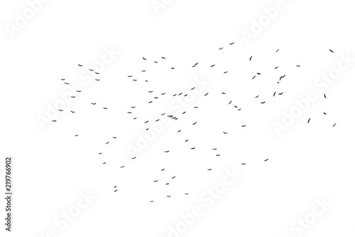 Flying birds isolated on white. Asian openbill. Migratory bird.
