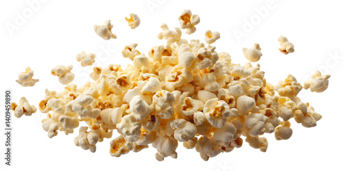 flying delicious popcorn isolated on white background PNG , AI GENERATED