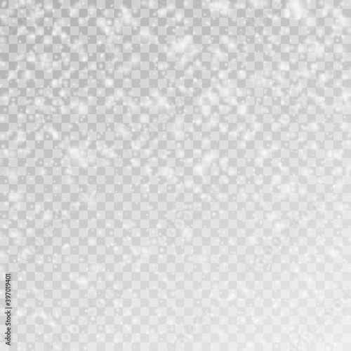 Flying silver sparkles, abstract luminous particles. Seamless realistic falling snow or snowflakes.