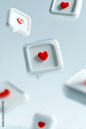 Flying white message envelopes with heart symbols inside, representing love, communication, and romantic feelings.