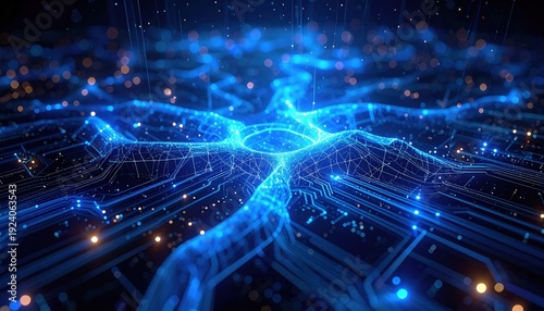 FlyPro Firefly abstract wireframe structures interlinking, representing complex networks and connections, on a glowing circuit board.