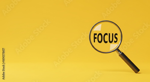 Focus concept magnifying glass on yellow background for attention