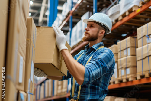 Focused Warehouse Worker Sealing Shipments
