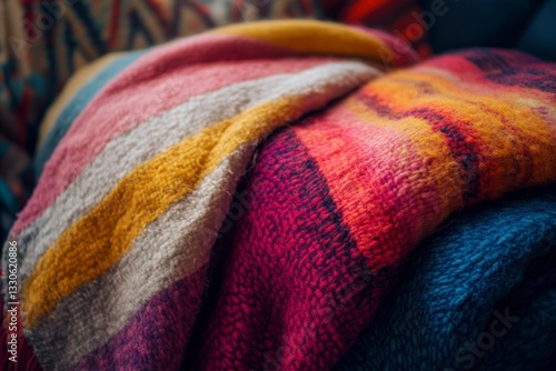 Folded Colorful Wool Blanket with Striped and Textured Pattern
