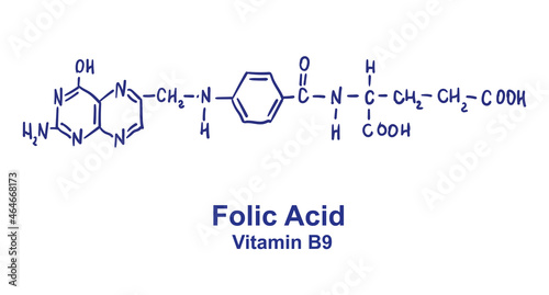 Folic acid chemical structure. Vector illustration Hand drawn.
