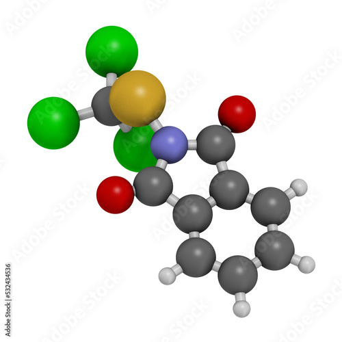 Folpet fungicide molecule, 3D rendering.