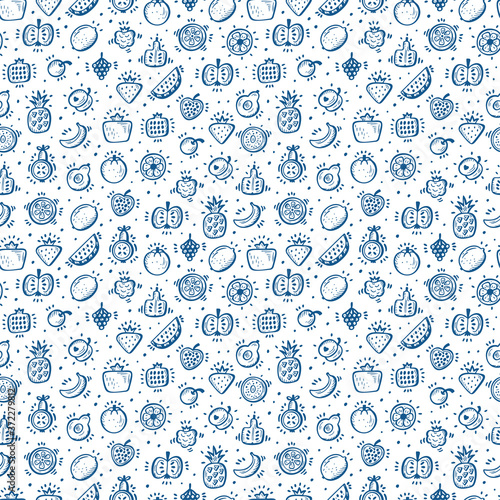 Food background. Doodle Fruits and Berries Seamless pattern. Vector illustration