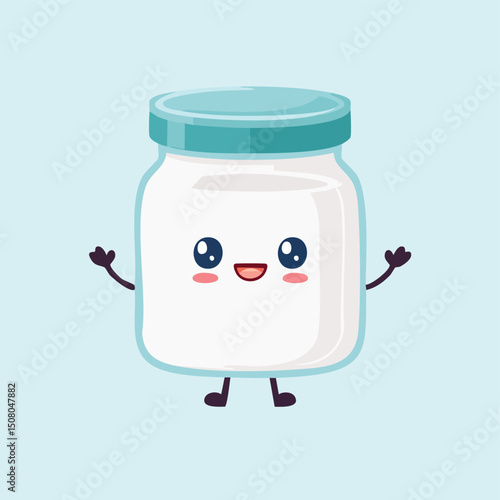 Food jar in cute cartoon character style with expressive face and limbs.