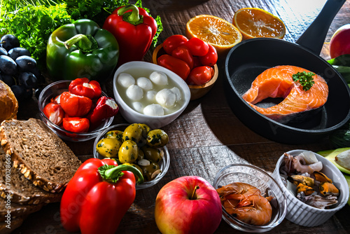 Food products representing the Mediterranean diet