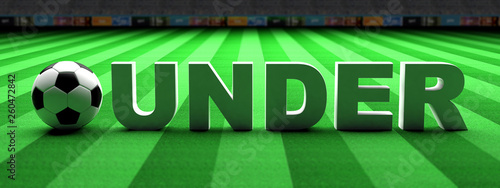 Football betting. Soccer ball, under text on green grass, banner, 3d illustration