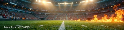 Football burning on the end zone , goalpost, football, accident