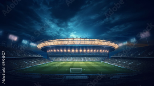 Football stadium at night. Illustration AI Generative.