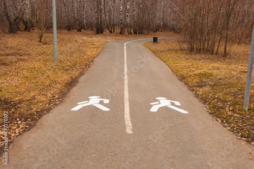 footpath in a city Park, foot path sign on asphalt