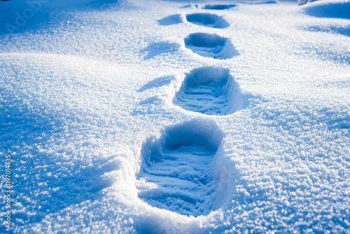 Footprints in fresh snow create a serene winter scene, showcasing nature's beauty and the tranquility of a snowy landscape