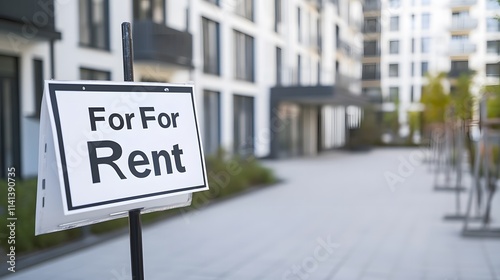 For rent sign displayed on a residential building, symbolizing opportunities for new beginnings and the dynamic nature of urban living