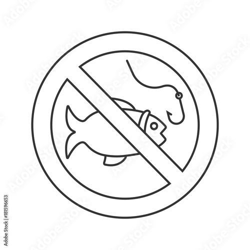 Forbidden sign with fish linear icon