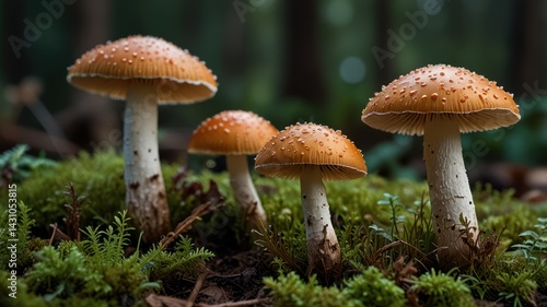 Forest Mushrooms Close-up in Mossy Ground