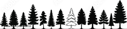 Forest Tree Silhouette Set: Evergreen Pine Trees in Various Sizes and Shapes.