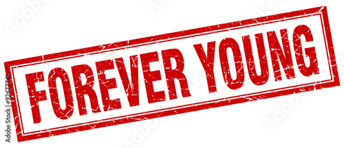 forever young red square grunge stamp on white