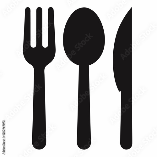 Fork spoon knife black icon set. Black silverware sign. Vector on white background.
