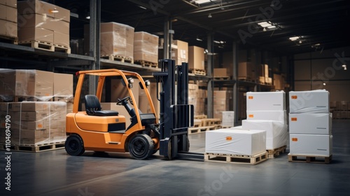 forklift moving boxes in a warehouse for efficient logistics and storage