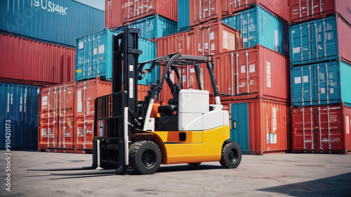 Forklift Parked in Front of Shipping Container Stack