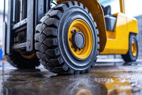 Forklift Tire. Front Wheels of Forklift in Industrial Setting