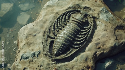 Fossilized trilobite imprint in sediment showcasing detailed prehistoric marine life history