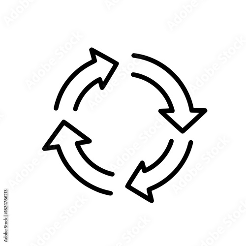Four arrows in a circle, illustrating a cycle, loop, or refresh.