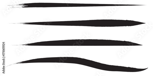 Four Black Ink Brush Strokes: Varying Widths and Curves.