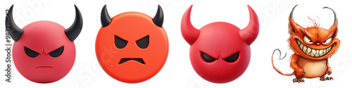 Four cartoonish devil faces with varying expressions, showcasing playful and mischievous traits against a black background.