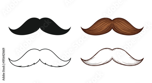Four different mustaches displayed in black brown and white tones