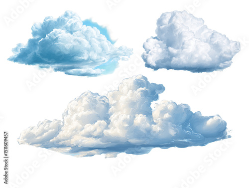 Four Fluffy Cumulus Clouds on Transparent Background, PNG