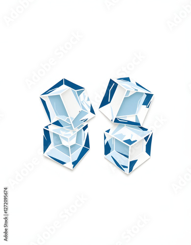Four flying ice cubes cut out, flat papercut style. with white shades