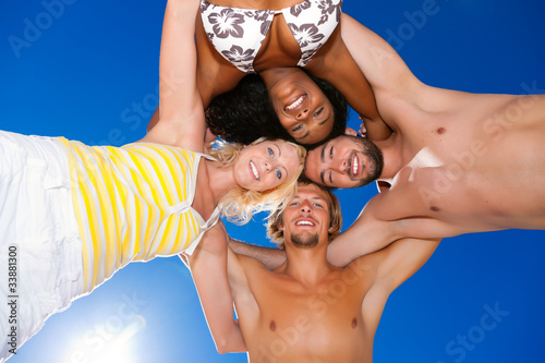 Four friends in vacation at the beach
