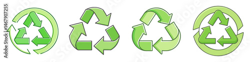Four Green Recycling Symbols Representing EcoFriendliness and Environmental Responsibility