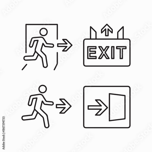 Four minimalist line showing exit signs and running figures