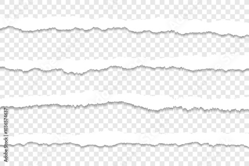 Four Realistic Torn Paper Strips with Transparent Background for Creative Design
