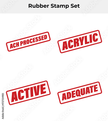 Four Red Distressed Rubber Stamps with Words on a White Background Design