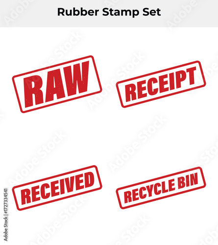 Four Red Rubber Stamp Designs with RAW, RECEIPT, RECEIVED, RECYCLE BIN Texts