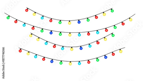 Four rows of colorful decorative string lights, festive PNG with alpha channel cut-out