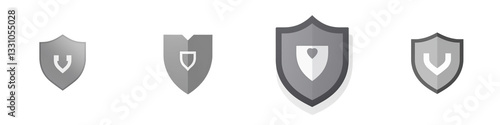 Four security shield icons show different forms on a white background, representing protection and safety isolated on white or transparent