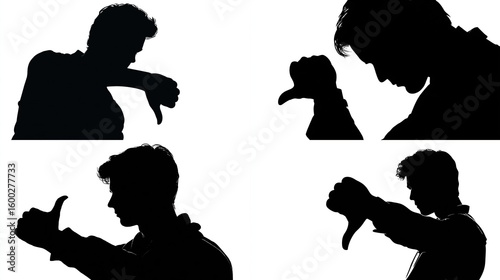 Four silhouette figures, each displaying a thumbs-up or thumbs-down gesture